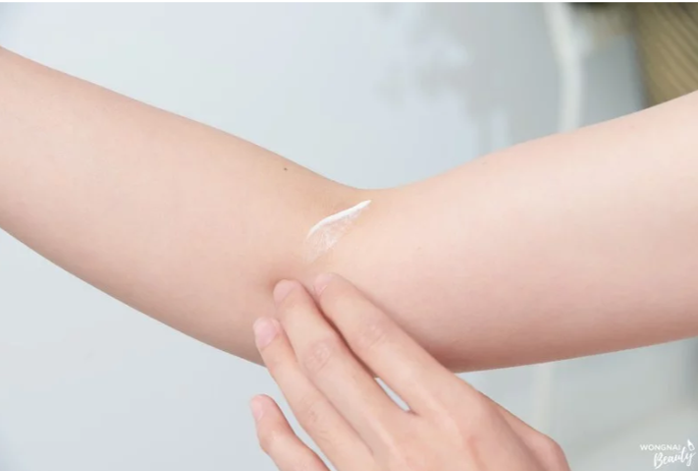 สำหรับใครที่กังวลว่าผิวแพ้ง่ายใช้แล้วรอดไหม เราลองมาเทสท์ตรงบริเวณข้อพับ ซึ่งเป็นจุดที่บอบบางมาก ๆ ถ้าแพ้จะมีอาการแดง หรือเป็นเม็ดเล็ก ๆ จะบอกว่าใครที่ผิวแพ้ง่ายแนะนำให้ลองใช้วิธีนี้กับทุกอย่างเลยนะ ไม่ว่าจะครีม น้ำหอม หรือเครื่องสำอาง มันได้ผลจริง ๆ เอาละ ทิ้งไว้ 30 นาที ปรากฏว่าไม่เป็นอะไรเลย ถือว่าสอบผ่านค่าาา